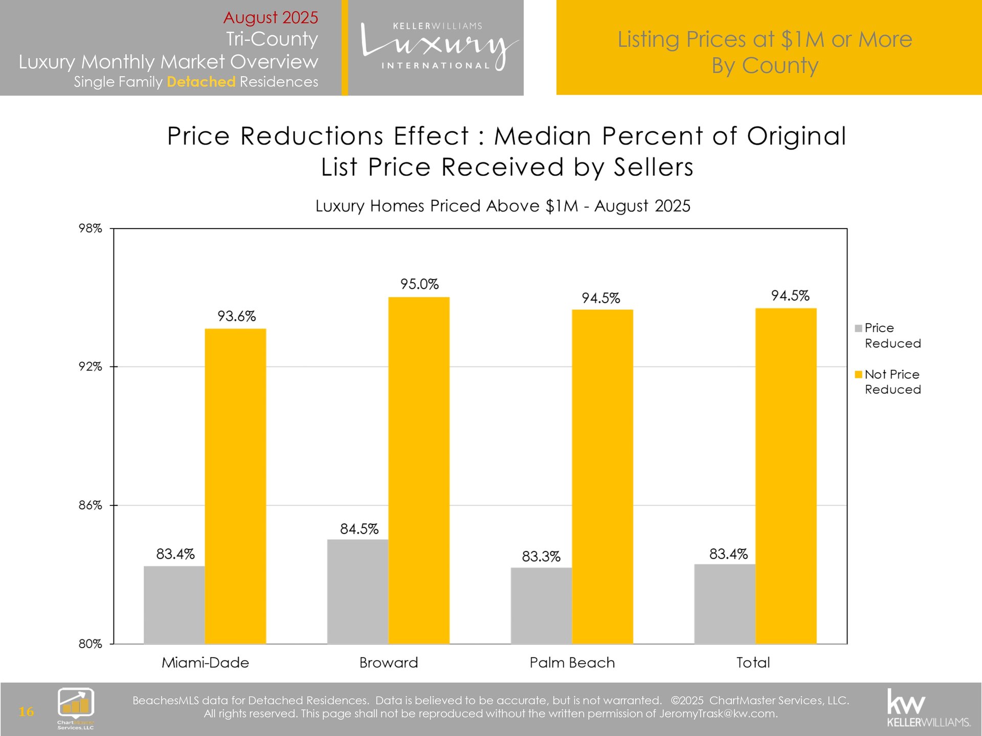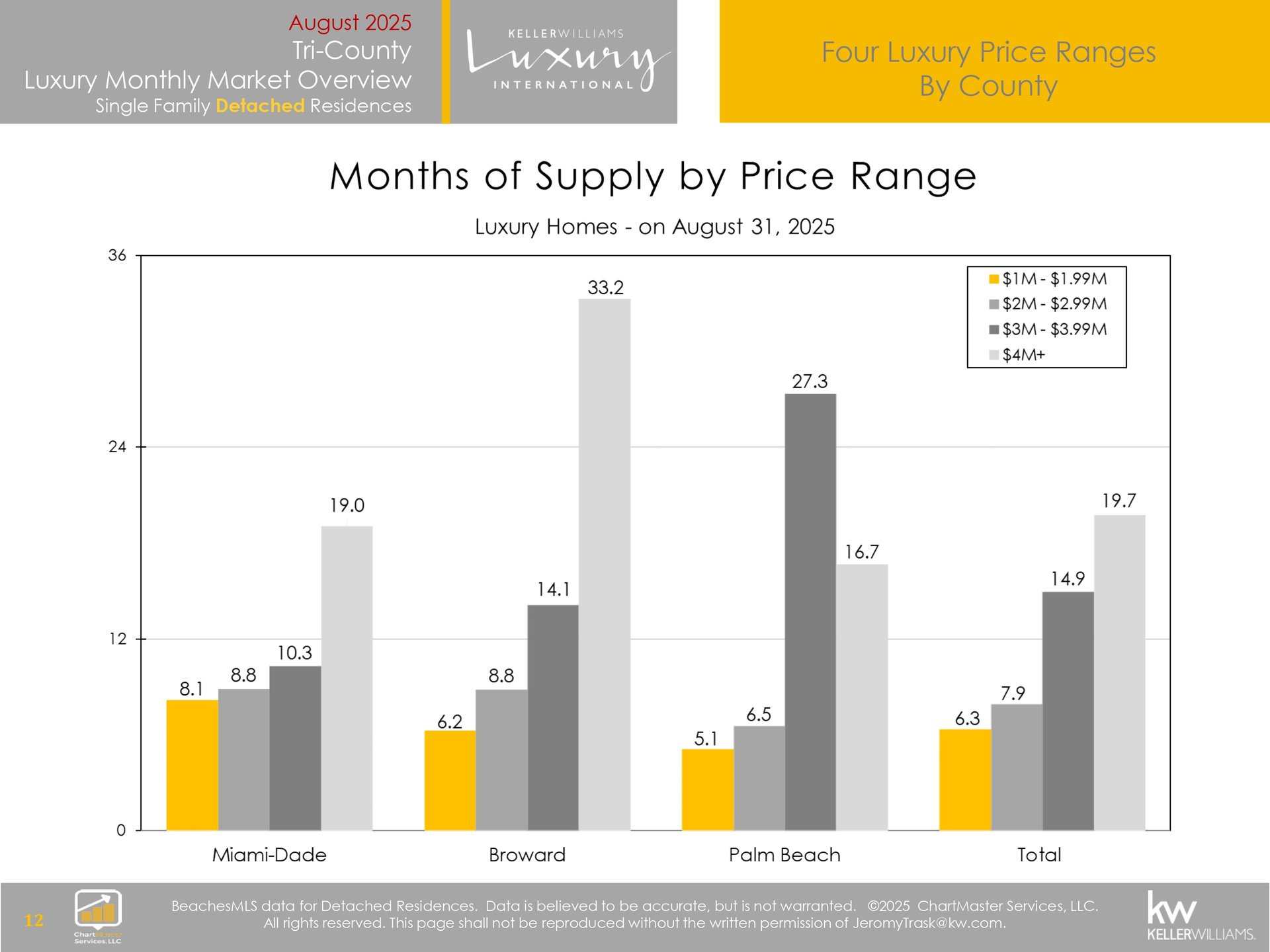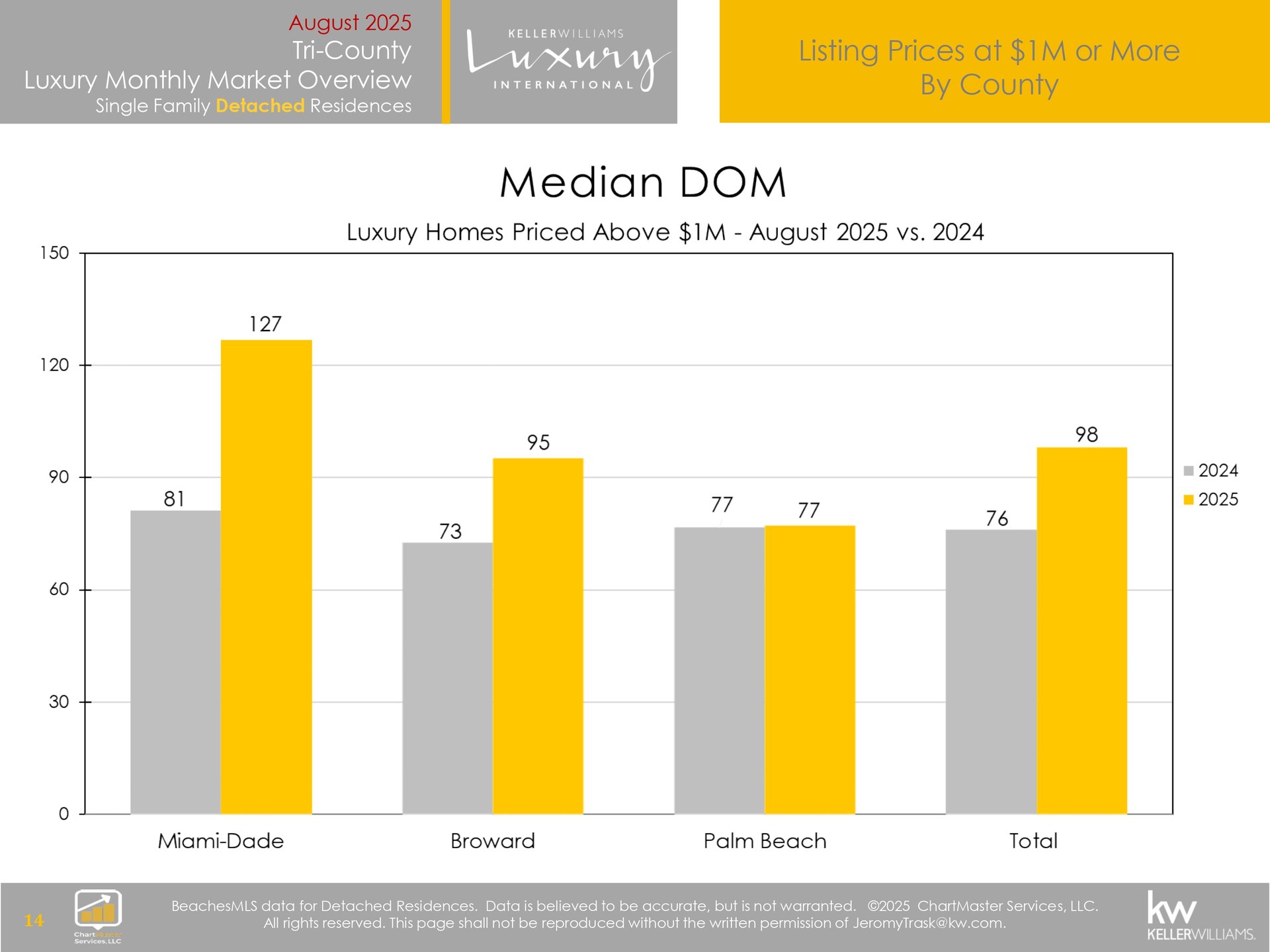 Next, let’s explore the luxury Single Family Home market—properties priced at $1 million and above. This year-over-year review across Miami-Dade, Broward, and Palm Beach counties provides insights into trends in pricing, sales, and inventory for high-end homes.